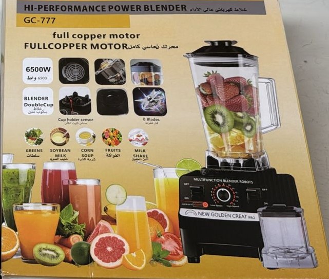 - خلاط كهربائي قوي بمحرك نحاسي كامل بقدرة 6500 واط.