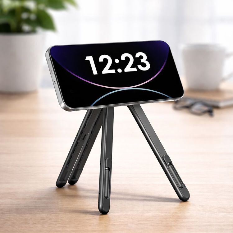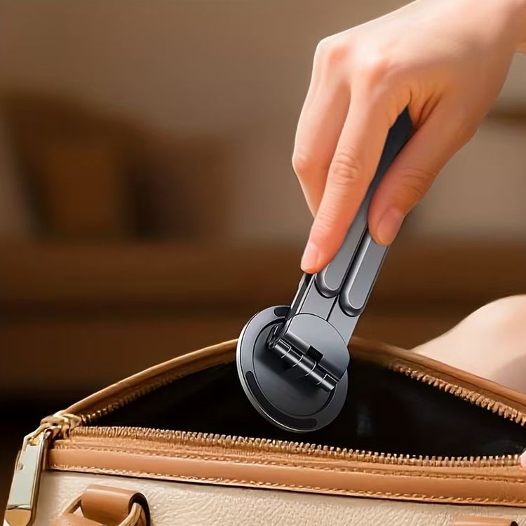 أحلى ميزة! الستاند ينطوي بالكامل ويصير قطعة نحيفة جداً، تقدر تاخذه معك للدوام، الكوفي، أو السفر وما ياخذ أي مساحة في شنطتك. 🎒🚀