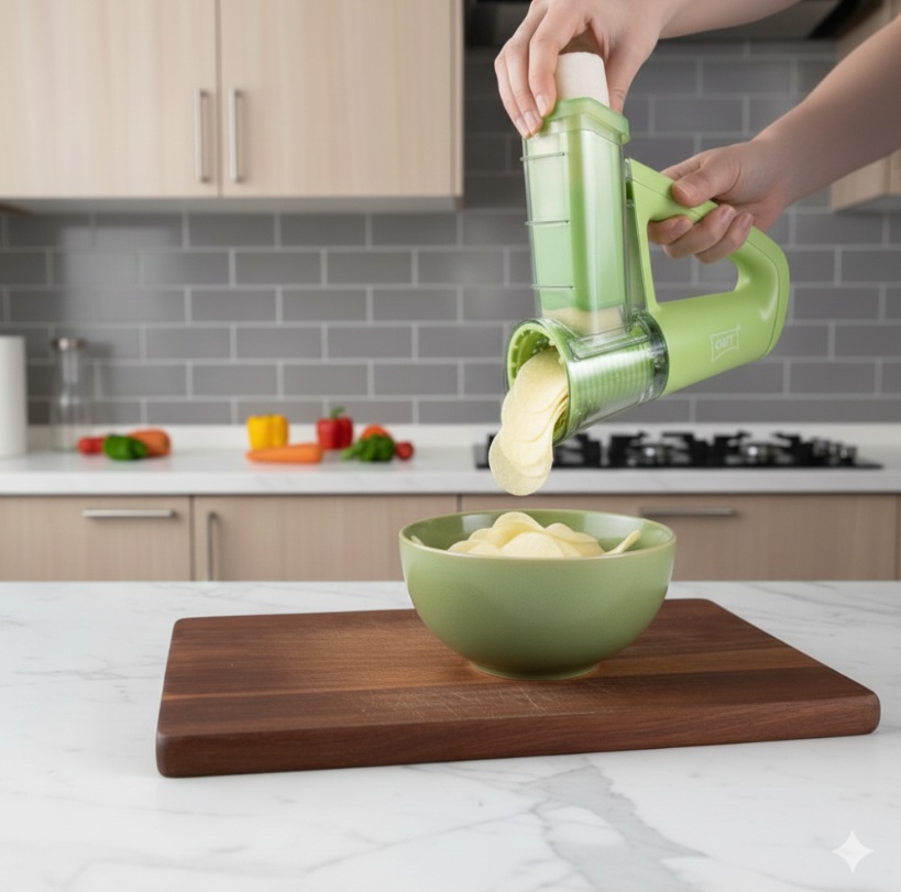 ريحي راسك ويدينك واستقبلي "الترند" اللي أثبت جدارته في كل مطبخ! نقدم لك "قطاعة الخضروات والفواكه اللاسلكية المحمولة".. الجهاز اللي يخليك تقطعين، تفرمين، وتهرسين الخضار مباشرة فوق القدر أو المقلاة بضغطة زر وحدة، وبدون ما توسخين صحون ومواعين إضافية!
