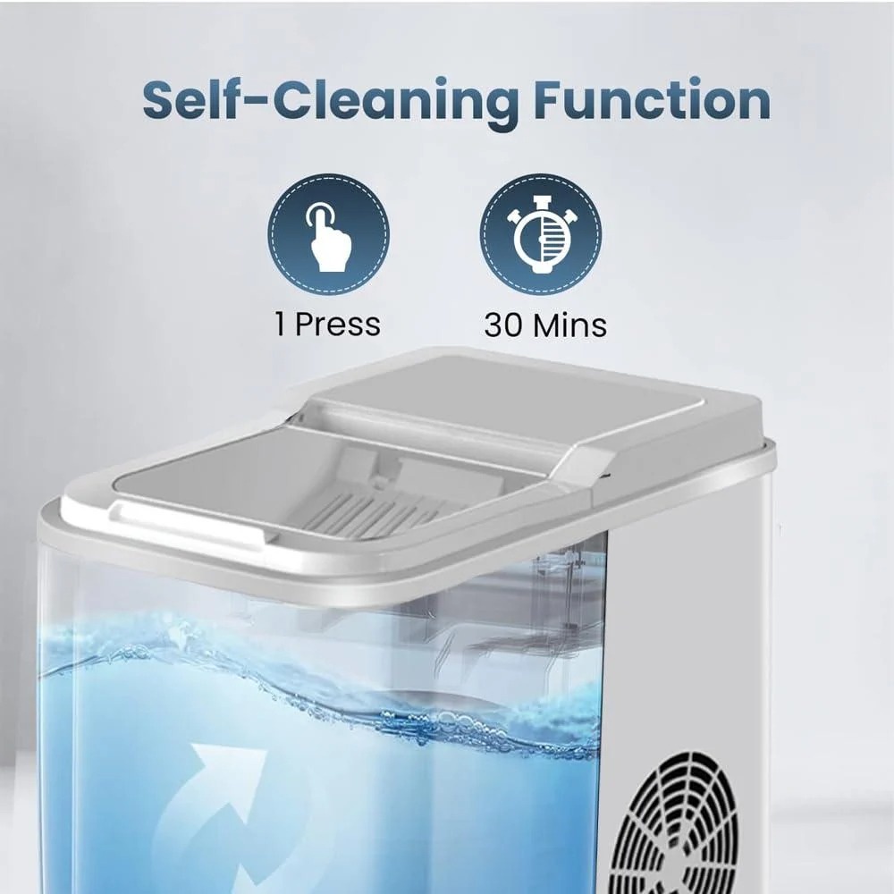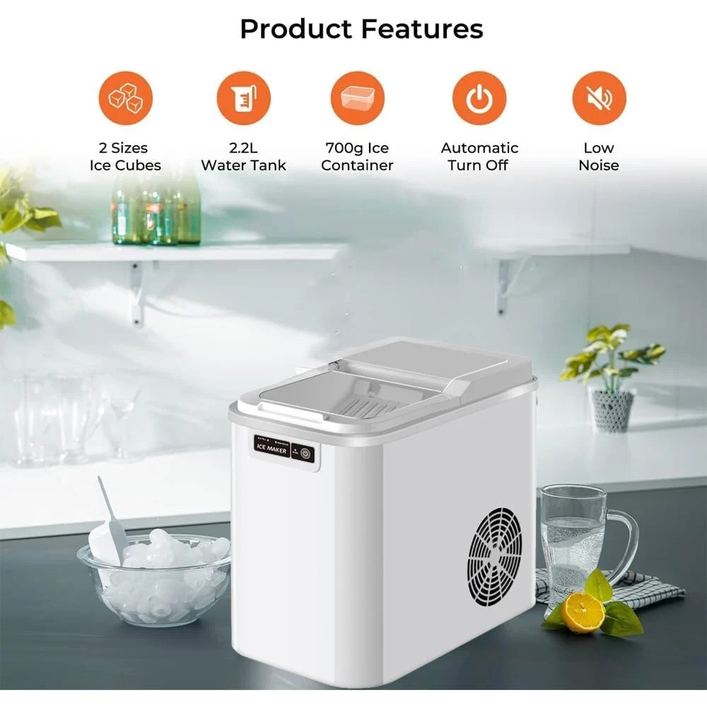 - خزان مياه 2.2 لتر: إنتاج يصل إلى 12 كيلوجرام ثلج يومياً دون الحاجة للتعبئة المتكررة.