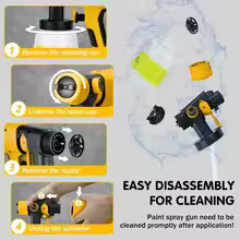 هذا المسدس مزود بمضخة عالية الضغط تضمن رشًا ثابتًا وقابلية ضبط لسمك الطلاء، مع ذراع تحكم مريح يتيح لك تغيير نمط الرش (رأسي، أفقي، دائري) بسهولة. يسهل تنظيف الجهاز بعد الاستخدام بفضل الأجزاء القابلة للفك والتنظيف السريع.