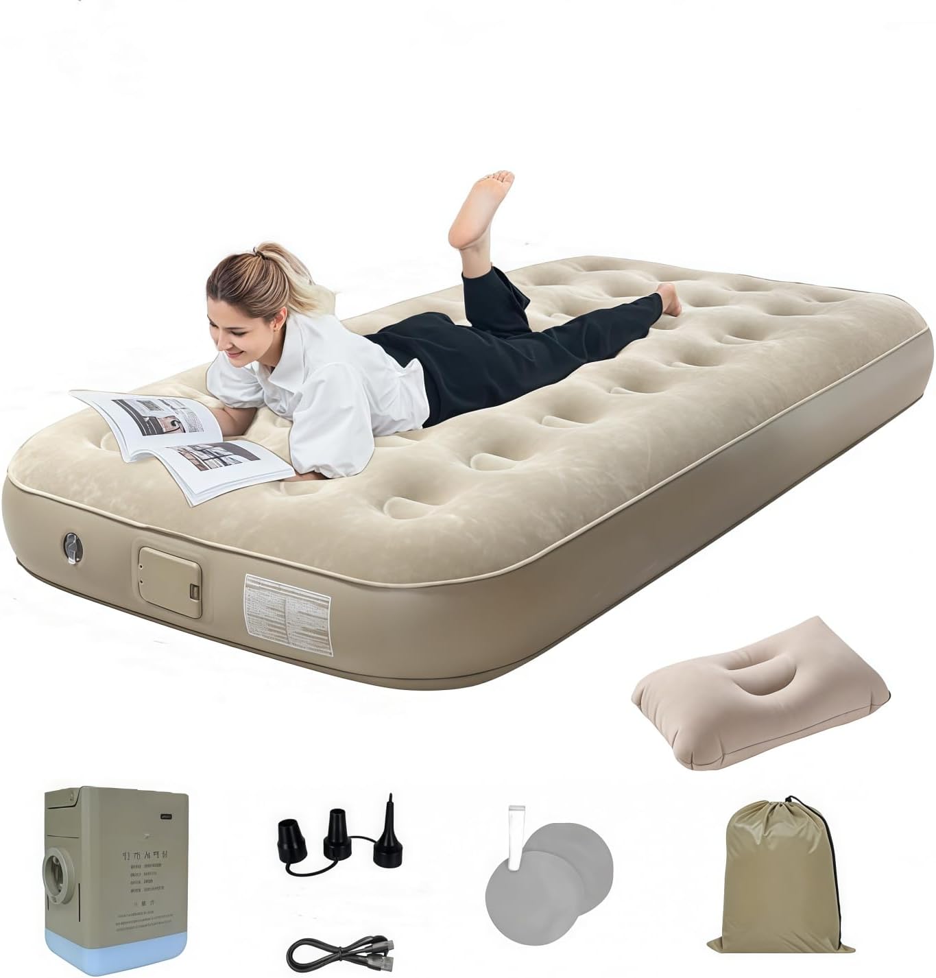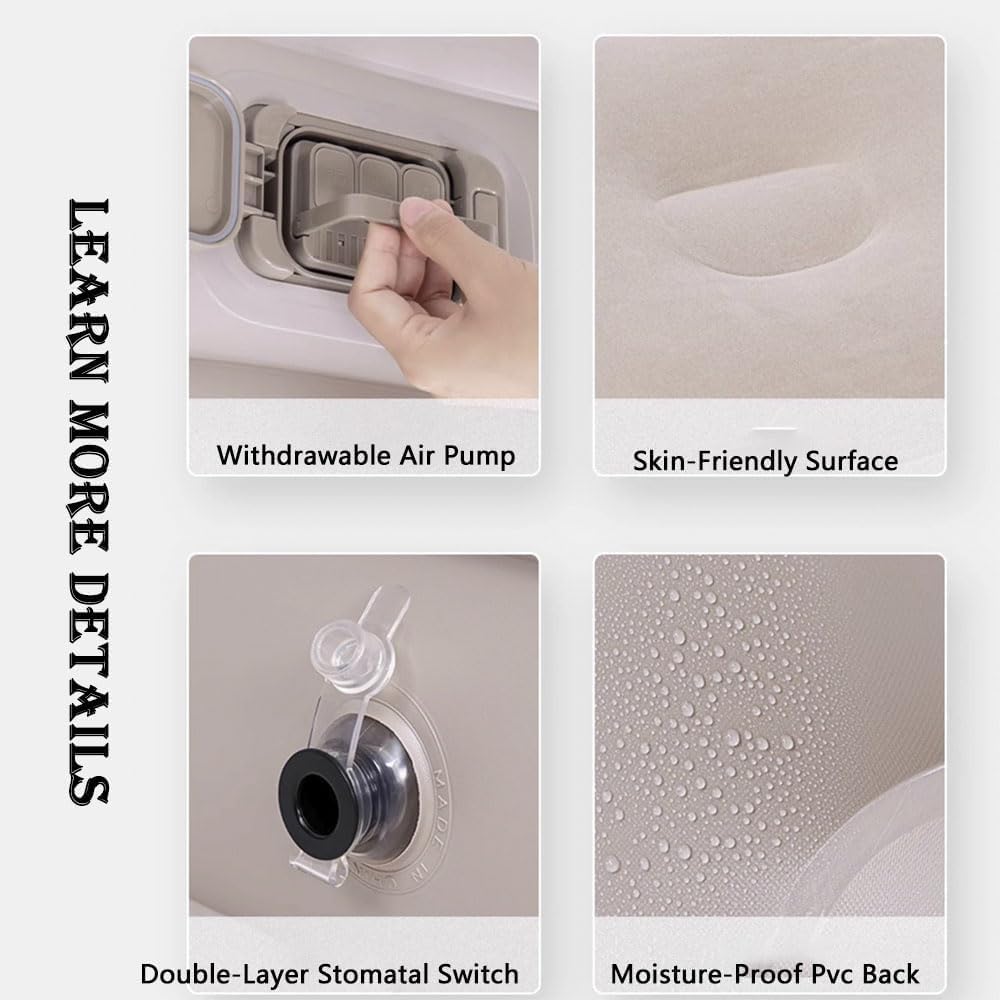 محمولة ومريحة - الجزء العلوي من المرتبة الهوائية مصنوع من مادة المايكروفايبر الناعمة الحريرية عالية الجودة مع تصميم مبطن لمظهر فاخر. تأتي العبوة مع حقيبة لسهولة التخزين بعد تفريغها بالكامل، مما يجعل من السهل وضعها في المساحات الضيقة مثل الخزانات والمركبات الترفيهية
