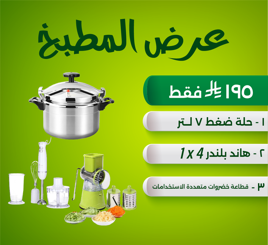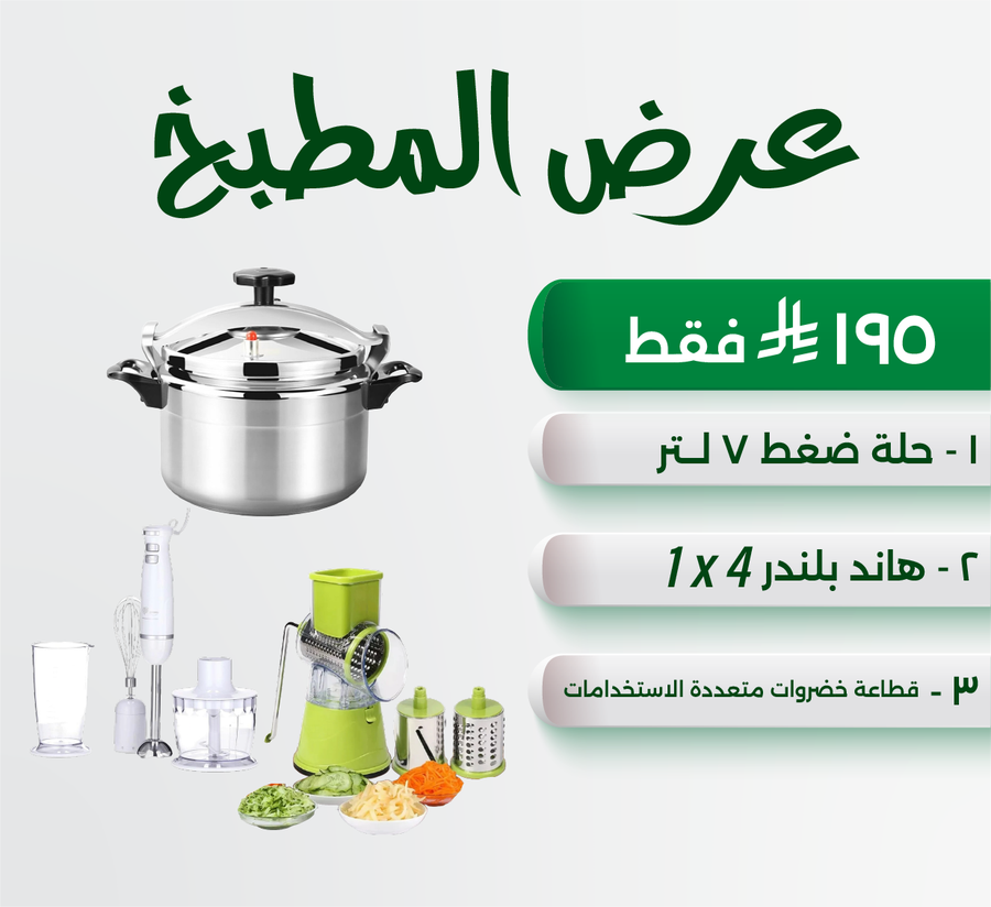 💥 احصل على حلة ضغط 7 لتر + هاند بليندر 4*1 + قطاعة خضروات بأقل من نصف التكلفة!