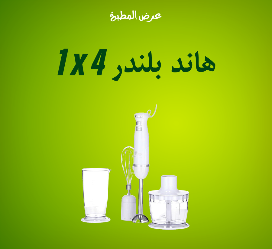 - 🔹 أربعة وظائف: خلط العصائر 🥤، خفق الكريمة 🥚، هرس الخضار 🍲، فرم الثوم والبصل 🧄
