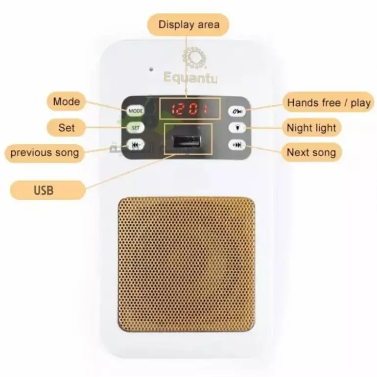 - 📻 عالم من الخيارات: لا تقتصر على القرآن فحسب، بل تدعم الراديو (AM/FM) لمحطاتك المفضلة، وتعمل كسماعة بلوتوث لربط هاتفك، بالإضافة لمنافذ USB وكرت ذاكرة لتشغيل ملفاتك الخاصة.
