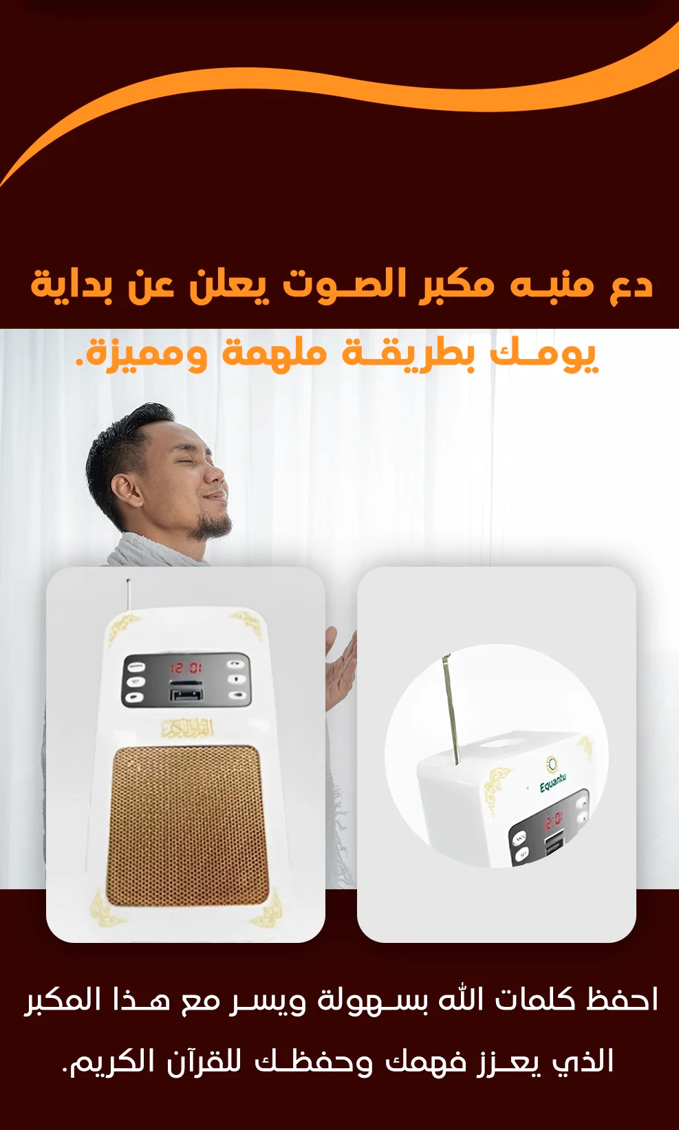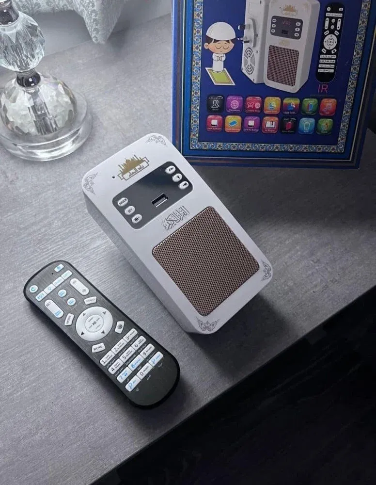 حوّل أجواء منزلك إلى واحة من السكينة والنور مع هذا الجهاز الشامل الذي يجمع بين التكنولوجيا الحديثة والروحانية العميقة. ليس مجرد مكبر صوت، بل هو مساعد إيماني متكامل 4 في 1 يغنيك عن عدة أجهزة.
