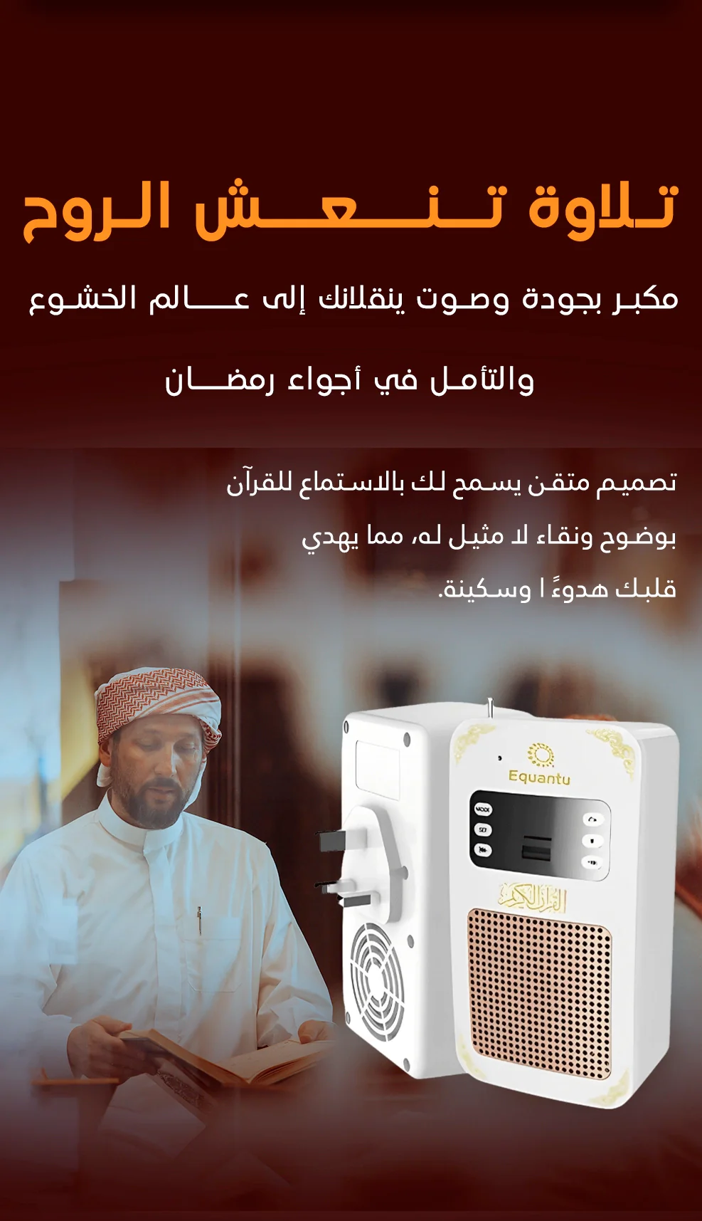 - 🎙️ صوت نقي يلامس القلب: استمتع بتلاوات خاشعة لأشهر القراء (مثل المعيقلي، العفاسي، عبدالباسط) عبر مكبرات صوت مزدوجة عالية الجودة تضمن لك صفاء الصوت وقوته دون تشويش.